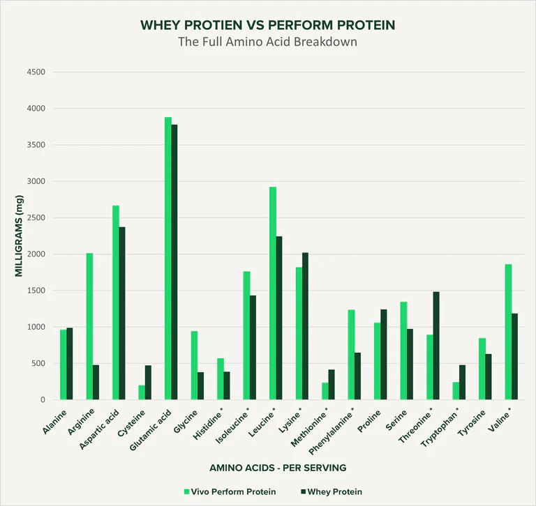 A Perform teljes spektrumot biztosít: mind a 9 esszenciális aminosavat + hozzáadott BCAA-kat = teljes értékű fehérjeforrás minden adagban.